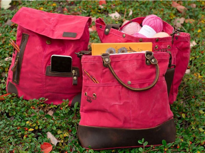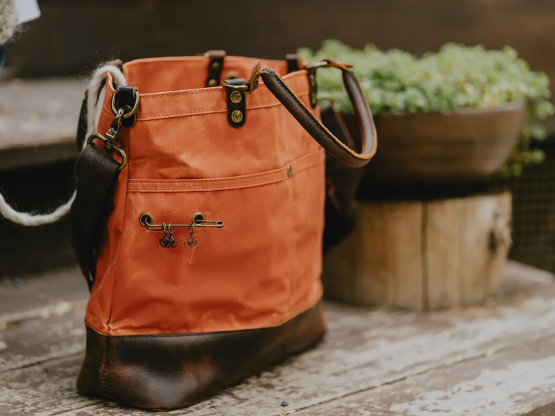 The Maker's Canvas Tote combines a chic design and functional features with enough space to hold your yarn, needles, pattern, and so much more. The rustic genuine leather accents age beautifully with time, and the waxed canvas makes it unique to you. The Tote has metal feet, a removeable strap, and a snap closure, along with a classic look that fits into any lifestyle.