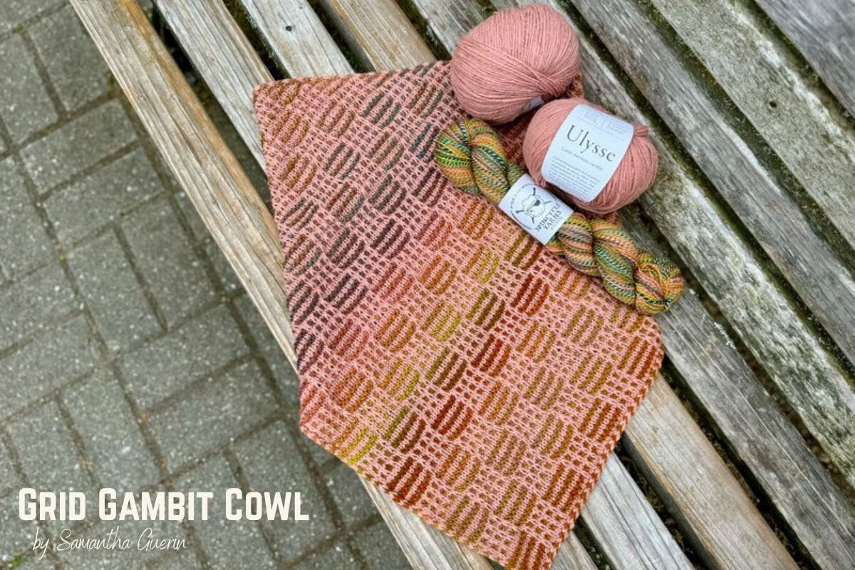 Do you ever cast on a new project thinking "I'll just knit a few rows" and suddenly realize you've spent the whole entire day knitting?! If you decided to knit a Grid Gambit cowl (shown above), be prepared for that to happen! Grid Gambit by Samantha Guerin is worked flat beginning at one corner, shaped with increases and decreases, and seamed after blocking. The cowl features an allover mosaic pattern, built in i-cord edges and an i-cord bind off. Did we mention the pattern includes both written and charted instructions? Absolute perfection. If you're not familiar with mosaic knitting, we encourage you to give it a try. Unlike traditional stranded colorwork (where you're using two or more strands at a time), mosaic knitting uses only one strand at a time. In addition to making colorwork simpler to manage, you get fewer floats and a more flexible fabric.