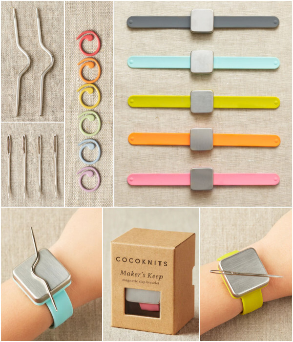 One of the many advantages to knitting is that you can take it with you everywhere - but in the process, you also lose little knitting notions everywhere! The Maker’s Keep magnetic bracelet is a way to truly contain your knitting tools while traveling. It's a slap-bracelet so it fits everyone (one size truly fits all here). You can wear it, or simply drop it in your knitting tool bag to keep all the tools together – or even unfurl it and push the magnet to one end to use it as a straight edge while reading down a pattern.