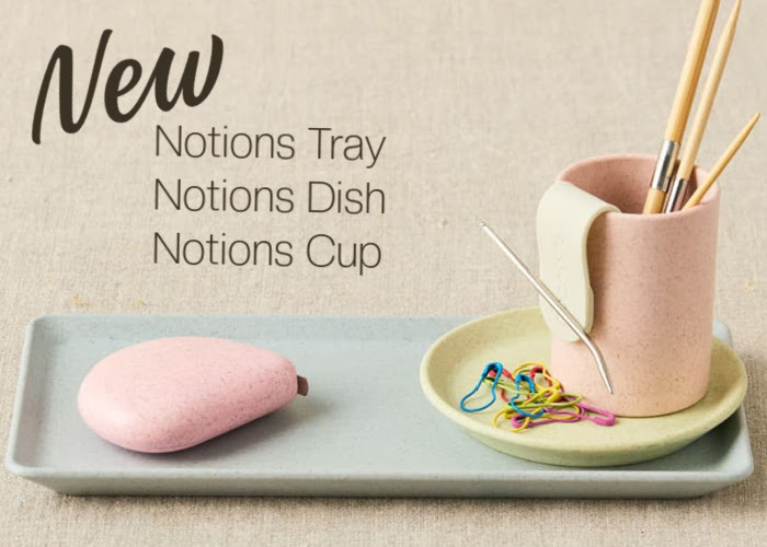 These three organizational pieces are designed to keep your crafting notions close at hand. But they have a hidden superpower: magnets! The Tray and Dish magnets will keep small metal notions extra secure. The edges are perfectly curved to allow easy retrieval of stitch markers. The Cup can hold pencils, DPNs, and tapestry needles and its metal base can cling to the magnetic Tray or Dish to prevent accidental spills.