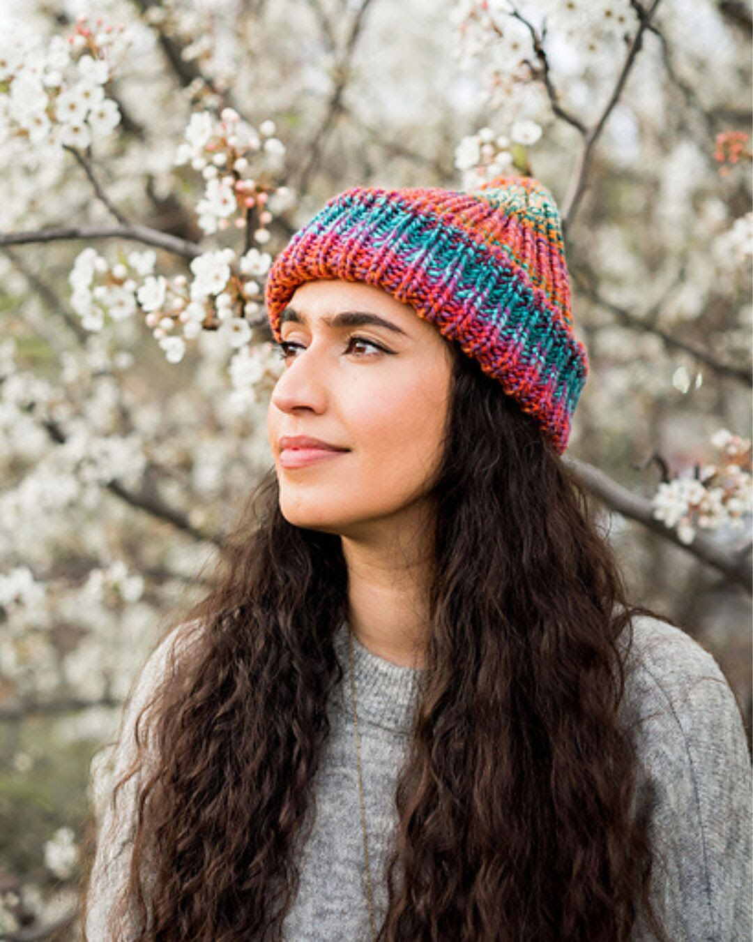 The Plumped Up Harlow is one of our go-to hat patterns for quick gift knits. Ideal for beginner brioche enthusiasts, this hat is knit from the bottom up in two color brioche and totally reversible, which makes it almost like two hats in one! You can find the pattern here. If you want to take your brioche skills to the next level, Andrea also designed a matching brioche cowl knit in Spincycle Plump that you can find here.