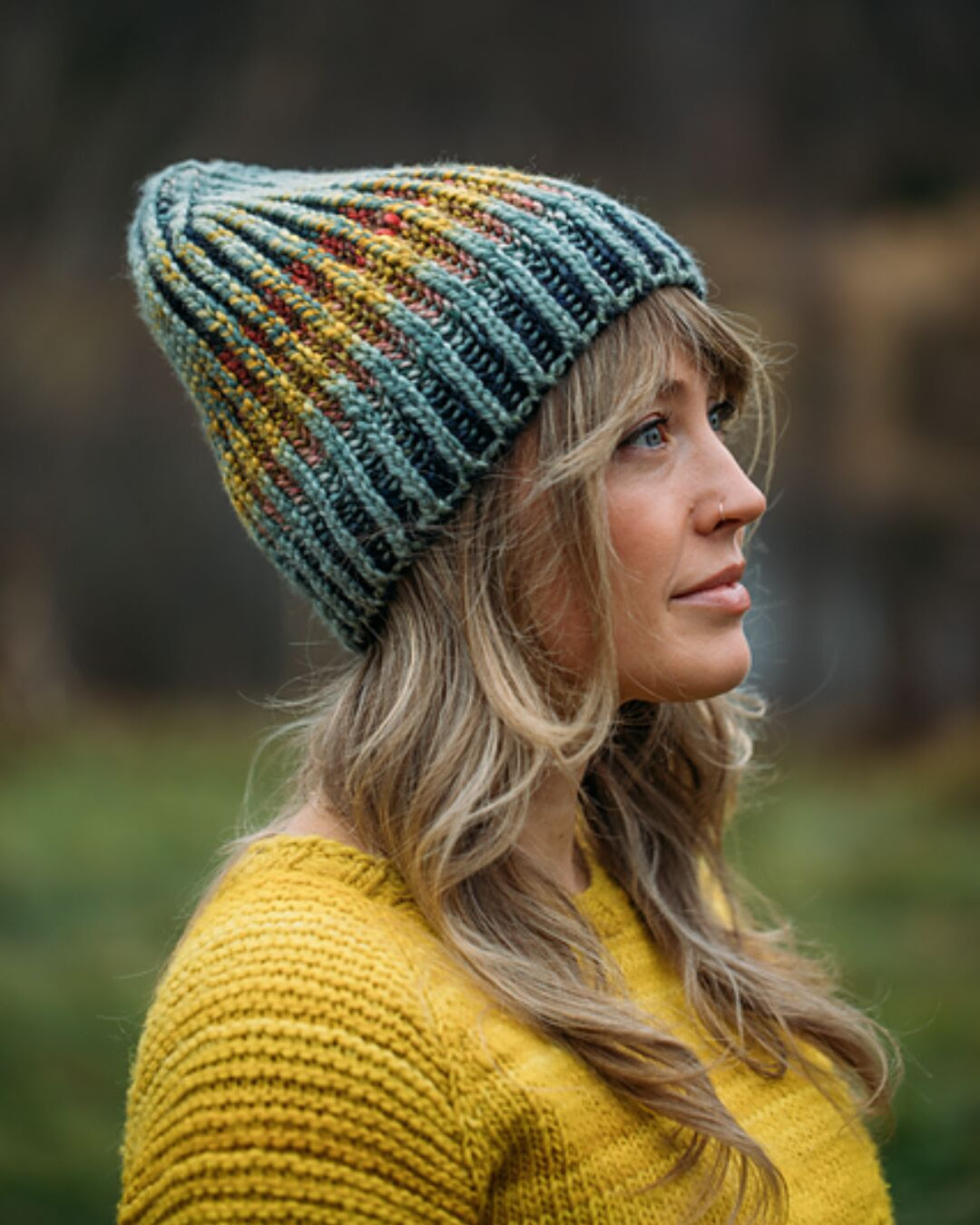 Not familiar with Plump? Plump is a soft, warm and oh-so-squishy yarn from Spincycle. It's kettle dyed on American grown wool in some of their favorite colorways, with a great mix of old standards and flashy new ones. Spun in their custom Italian mills, this 2ply bulky weight yarn knits up quick and has the same gorgeous, unpredictable color changing effect you have come to expect from a Spincycle colorway. We've rounded up a few of our favorite Plump hat patterns to help get you inspired - all of which work up fairly quick, making them fantastic gift knit options!