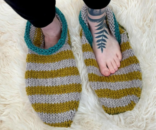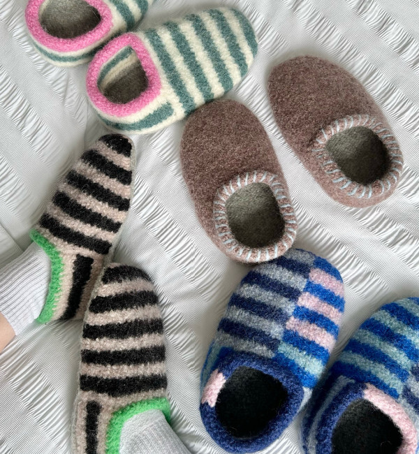 "While I don’t usually consider myself a knitter of footwear (hello, second sock syndrome), as soon as I saw Annie Germain's Sailor Slippers pattern popping up all over my feed, I knew I had to make a pair…. I’ll admit, I was a bit scared as I’ve never felted before, but it was so simple! And it turns out they’re INSANELY addicting to knit, and I might need to make about 10 more pairs "