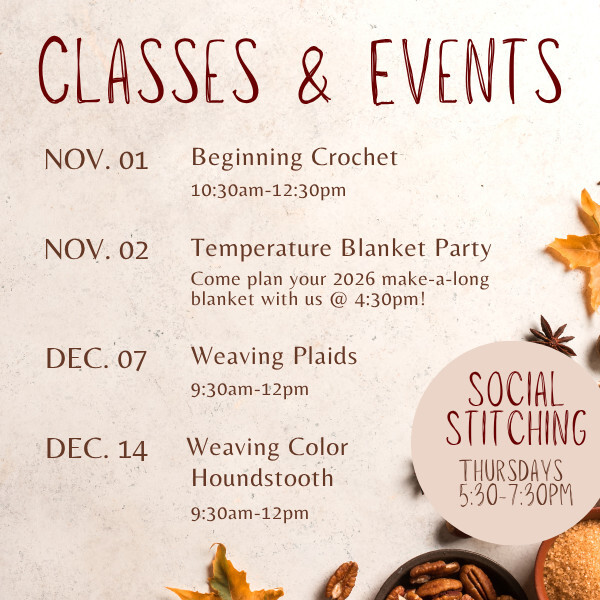 This Make-a-Long will run through the entire year of 2026, and we highly encourage you to attend our monthly MAL meetups. Having the support and encouragement of your local crafting community is a great way to stay on track, even when life gets busy. Thursday, January 8th at 5:30pm will be our first Team Temperature Blanket check-in. Beginning in February, we'll be having regular MAL check-ins down at the shop the first Thursday of every month from 5:30-7:30pm.