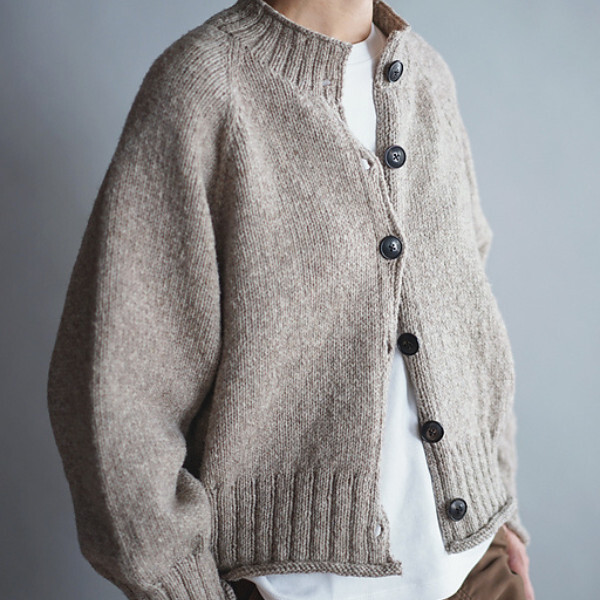 | Emily Greene's Citrine is a perfect wear-everywhere pullover, with a relaxed, drop shouldered silhouette, close-fitting long sleeves, and a slightly scooped neckline. With its relaxed style, easy fit, and architectural details, Citrine is an elevated basic that’s likely to replace your favorite comfy sweatshirt. Knit in De Rerum Natura Gilliatt, you'll need 4-8 balls to complete this project. | "Zakkuri" means casual, comfortable, thick fabric" in Japanese, and as the name implies, this plush cardigan has a relaxed fit. The Zakkuri Cardigan, designed by Noriko Ichikawa, is knit from the top down, and the buttonholes are made after completion. Knit in De Rerum Natura Gilliatt, you'll need 5-7 balls to complete this project. |