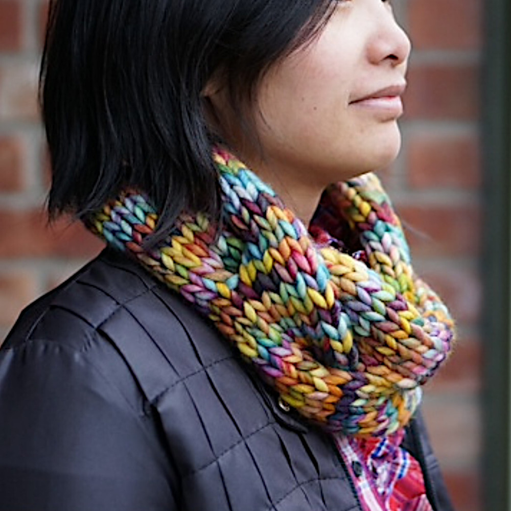 One of our favorite quick knit projects is the Rainbow Twist cowl designed by Thao Nguyen. Sometimes your neck needs a hug, and this will do the trick! The Rainbow Twist cowl requires just 1 skein of Malabrigo Rasta, and looks great with variegated yarn - but would look equally chic in a solid color.