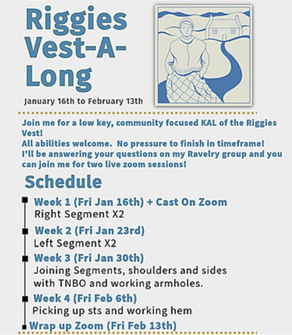 Gudrun is hosting a Riggies Vest-A-Long that starts later this week! This community focused KAL starts January 16th and will run until February 13th. You can find more information for this knit-a-long on the Shetland Trader Ravelry Group here. |