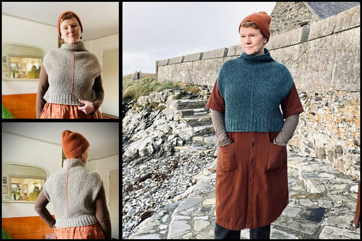 The shape and construction of this vest creates more of a poncho-style slipover with deep armholes and shaped shoulders. Gudrun's sample is shown above in Size 2 with 3" of positive ease at chest, and was knit with Jamieson's of Shetland Double Knitting Yarn. We love this rustic, traditional Shetland wool, but our current Jamieson's DK stock is fairly limited - so we've also pulled together some other yarn recommendations for you to choose from.