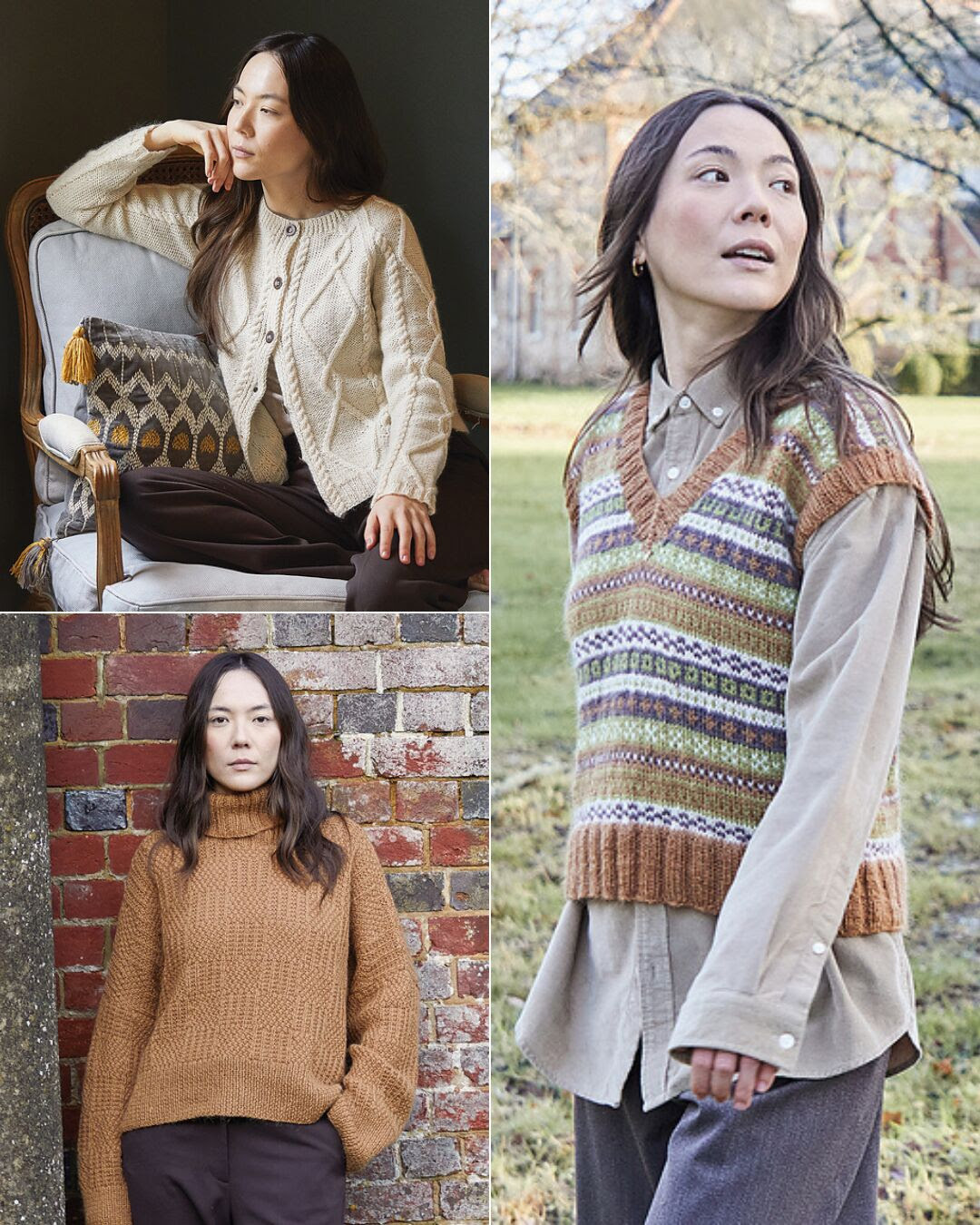 The second story, Kid Classic Love, is a sign of Rowan's affection for the most enduring of their yarns. For a quarter of a century Kid Classic has been a favorite amongst designers and knitters, and within these pages its popularity is celebrated with classic sophistication. This story is all about timeless, wearable knits - from soft, oversized sweaters and elegant textured jackets to effortless cardigans and delicate, lace inspired scarves. Whether you're layering up in a classic cable, styling a vintage twist, or wrapping yourself up in luxurious comfort, these pieces showcase the versatility and enduring appeal of Rowan Kid Classic yarn.