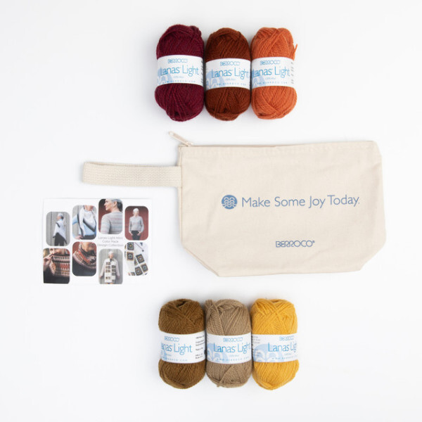 Take a look at these cuties! The Berroco Lanas Light Mini Color Pack features curated color palette options, each with six 25g mini skeins of the popular Lanas Light yarn. These pint-sized skeins are great for stranded colorwork, contrasting trims or stripes, and are meant to work in larger projects with the full size skeins of Lanas Light. Each mini color pack comes in a sturdy zipper pouch that's great for storing your notions or small projects.