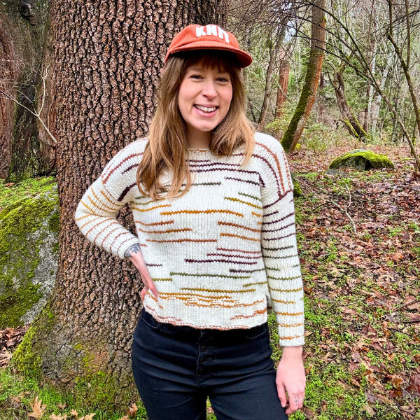 | If you prefer to crochet, give Zurie a try! This easy-to-make cowl features a simple stitch pattern to make the most of the color changes. This cozy accessory is worked flat then seamed, and can be worn looped once or twice for a closer fit. | Sarah decided to use Dash to knit The Daily sweater by Andrea Mowry. "While Dash is chunkier than what the pattern recommends, it's super airy and flexible - I swatched first and was able to get gauge. I love the results, plus it was a quick knit! |