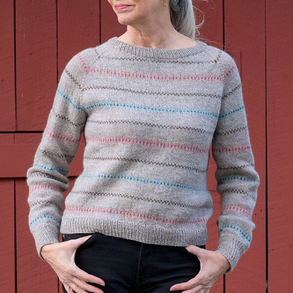 | Mel Kennelly's Birgit scarf is a modern take on a classic, join-as-you-go granny square scarf, which alternates between colorful motifs and solid color squares. Easily customize this fun project by choosing a Mini Color Pack and main color to suit your style, and enjoy every bit of this engaging crochet scarf! | Ingrid is a modern colorwork pullover designed by Åsa Buchta. It's knit from the top down with raglan shaping and simple stripes. Pair your favorite Mini Color Pack with a coordinating main color to create a personalized sweater you’ll love wearing all year long. |