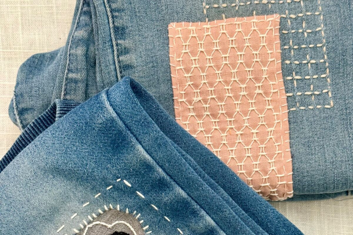 Are you familiar with the term "visible mending"? Visible mending is more than just a repair technique; it's a way to embrace sustainability that transforms flaws into a focal point, celebrating those imperfections through creativity. Visible mending often uses colorful threads, contrasting fabrics, and creative stitching to extend the life of your chosen garment (and reduce textile waste!).