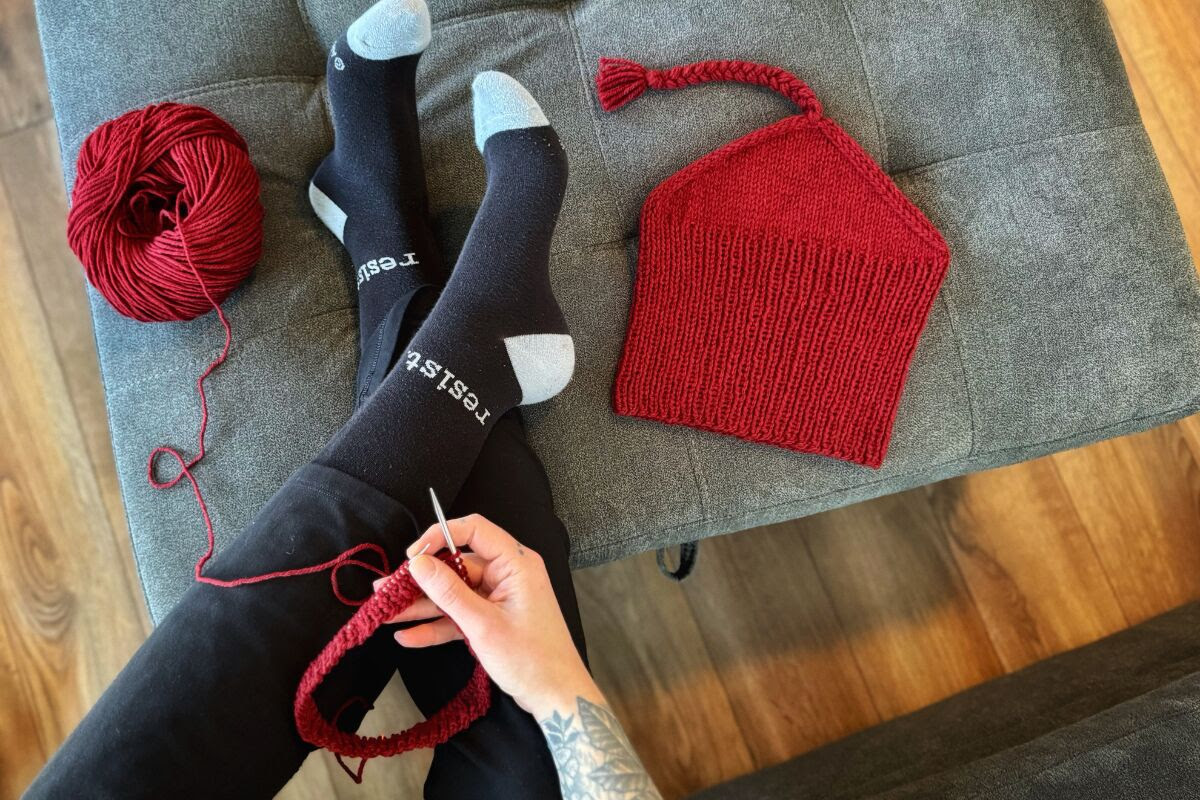 A few weeks ago we started knitting red hats and sent out an email to rally our community. We said we would cover the cost of the pattern for anyone who purchased red yarn to make a hat; and since then, we have sold 205 Melt the ICE Hat patterns (and sold out of red yarn!). This contributed over $1,000 to Needle and Skein's donation fund, which has now exceeded half a million dollars.