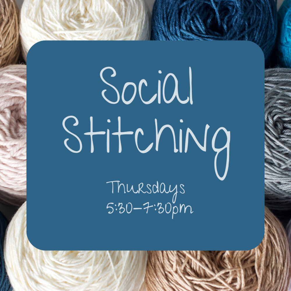 We're open late every Thursday evening to host weekly Social Stitching (previously called Knit Nights) down at the shop! We use this time to invite local makers with the goal of providing a welcoming space full of creative inspiration for knitters, crocheters and handworkers of all types. So, bring your current project and a friend, and we hope to see you there!Date: Thursdays