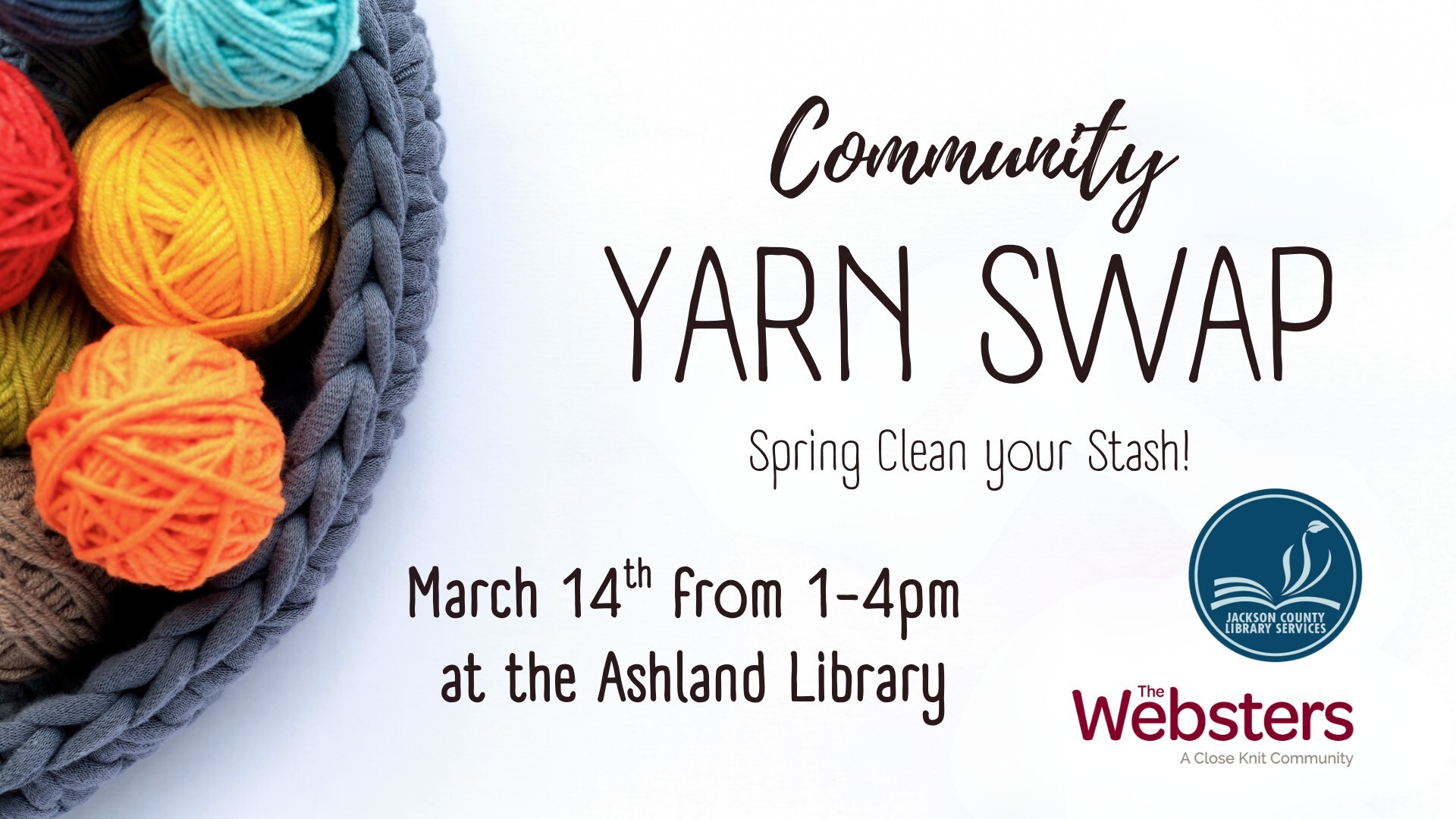 Ready to Swap?? We are excited to co-host our first yarn swap at the Ashland Branch of Jackson County Library.